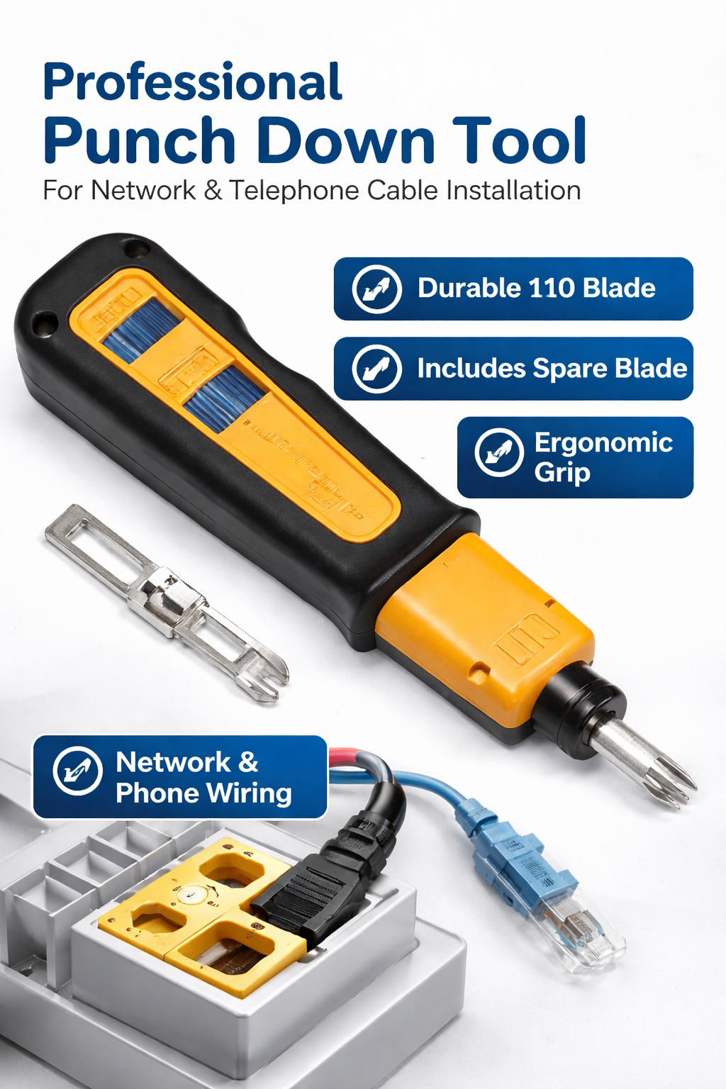The D814 Impact Tool is engineered for versatility, enabling seamless termination of telephone wires and network cables into patch panels, outlets, and surface mount boxes. Its ergonomic handle provides a comfortable grip, reducing hand fatigue during prolonged use. This tool is a must-have for installation professionals looking to optimize their workflow while maintaining consistent results. Wide usage in both voice and data cabling installations demonstrates its adaptability for various project requirements.