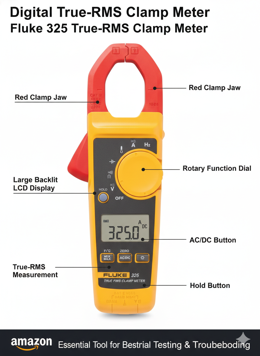 The Fluke 303 comes with all the rugged, reliable and accurate features you have come to trust, in a small, ergonomic design. The innovative body design offers a more compact tool to meet your needs. With features of AC current measurements up to 600 A, a large 30 mm jaw opening and CAT IV 300 V/CAT III 600 V safety rating, you get an easy-to-use tool that handles your everyday electrical maintenance needs.