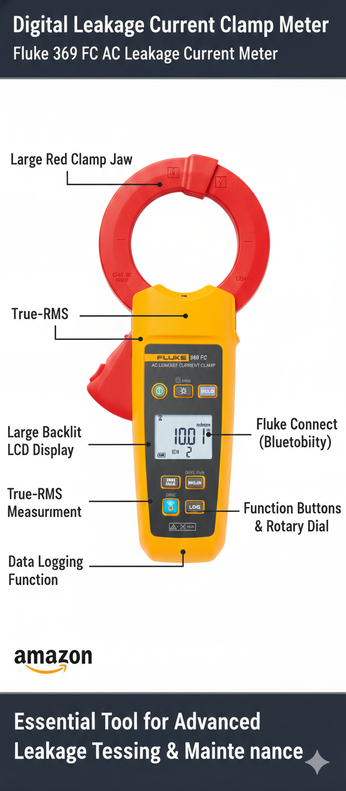 The Fluke 369 FC true-rms leakage current clamp meter helps users detect, document, record and compare leakage current readings over time as a means of preventing unplanned downtime, and identifying intermittent GFCI and RCD trips, all without taking equipment off line.