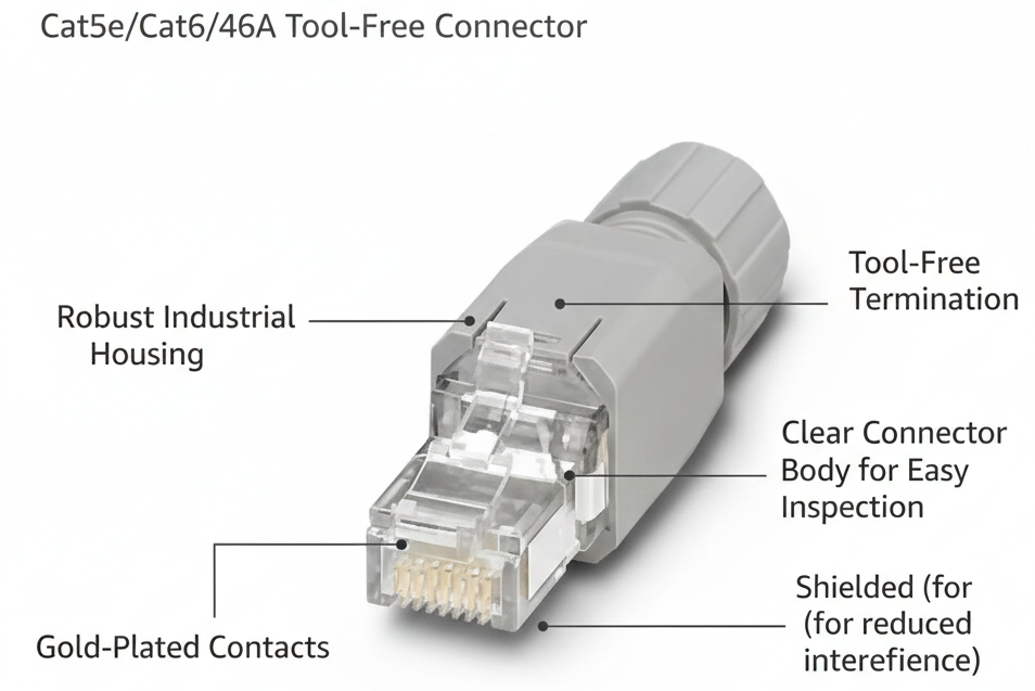 RJ45 connector, design: RJ45, degree of protection: IP20, number of positions: 4, 100 Mbps, CAT5, material: Plastic, connection method: Insulation displacement connection, cable outlet: straight, color: traffic gray A RAL 7042, PROFINET